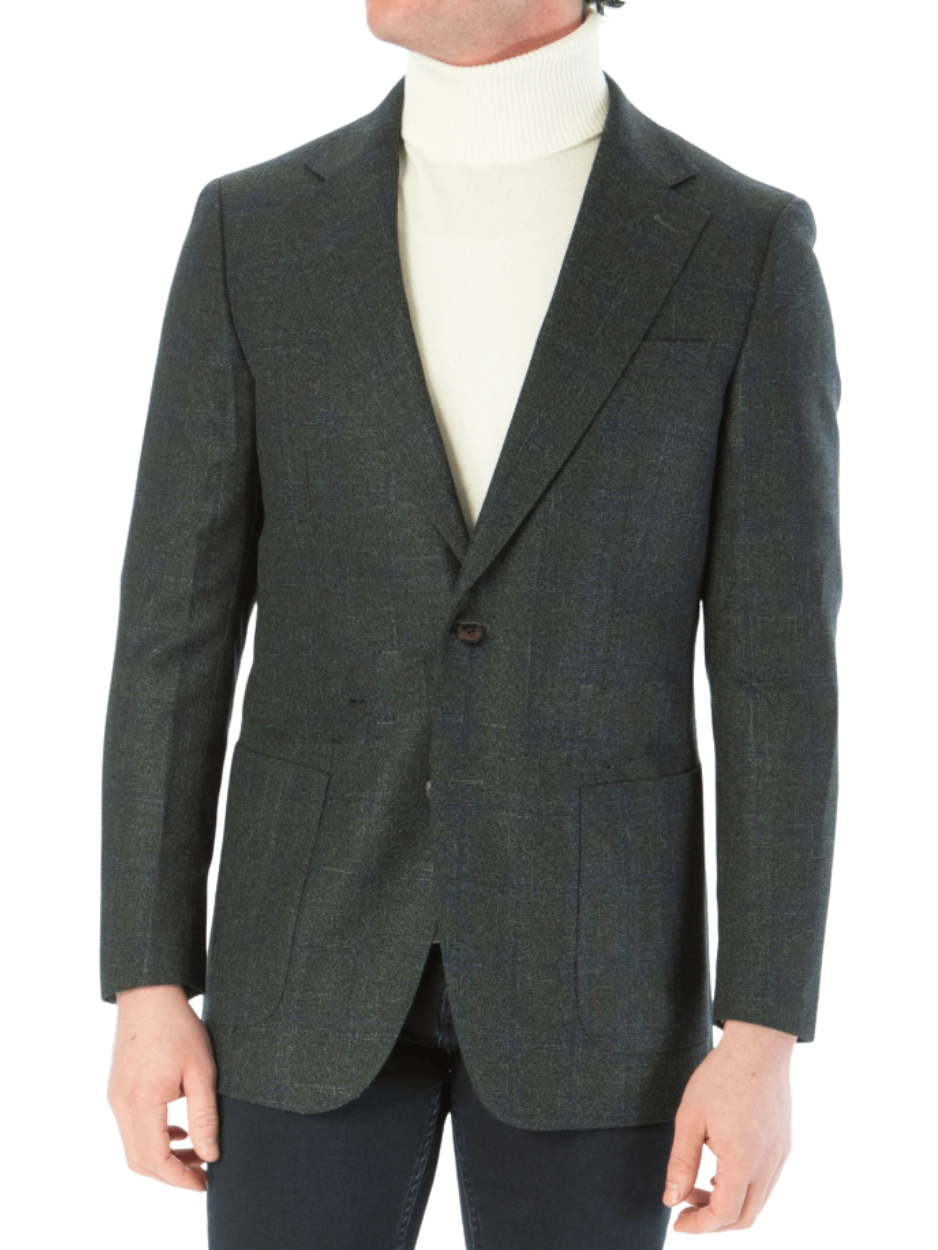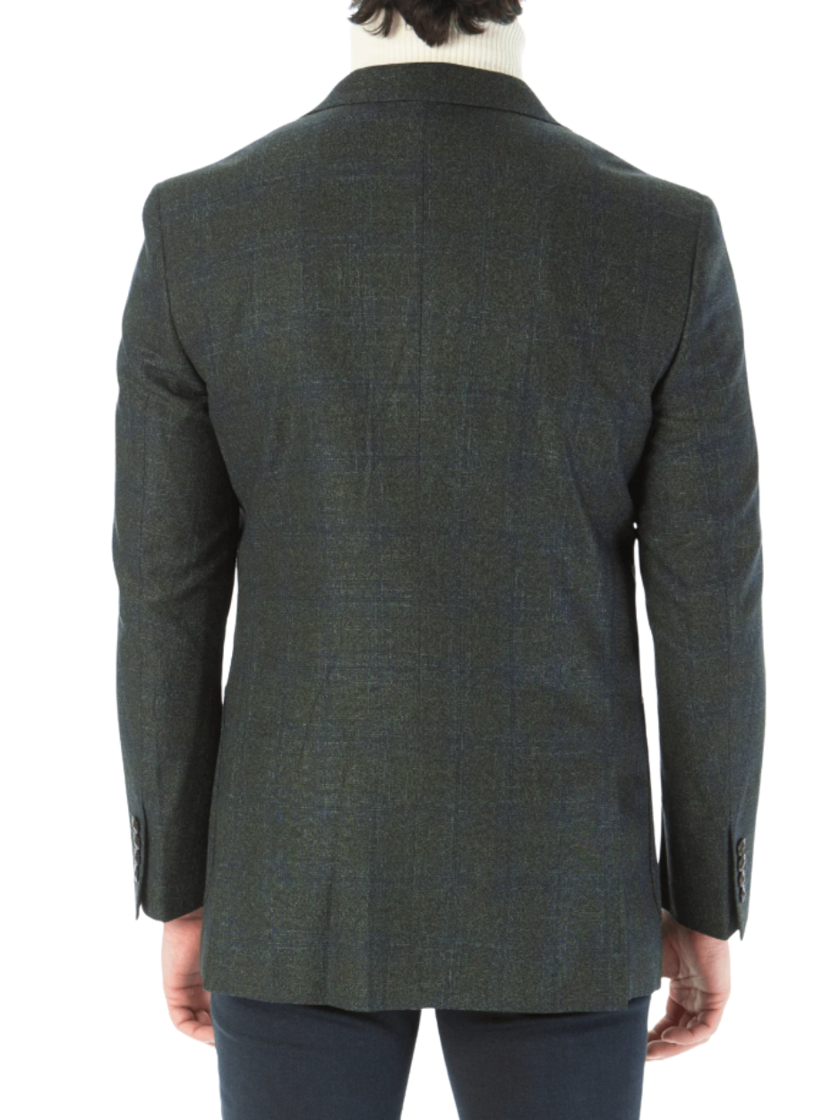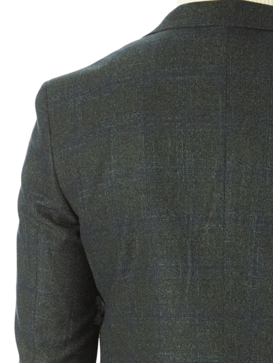 Sartoria Mazara Mens Classic Fit Green With Blue Check 2 Button Stretch Blazer Sportcoat