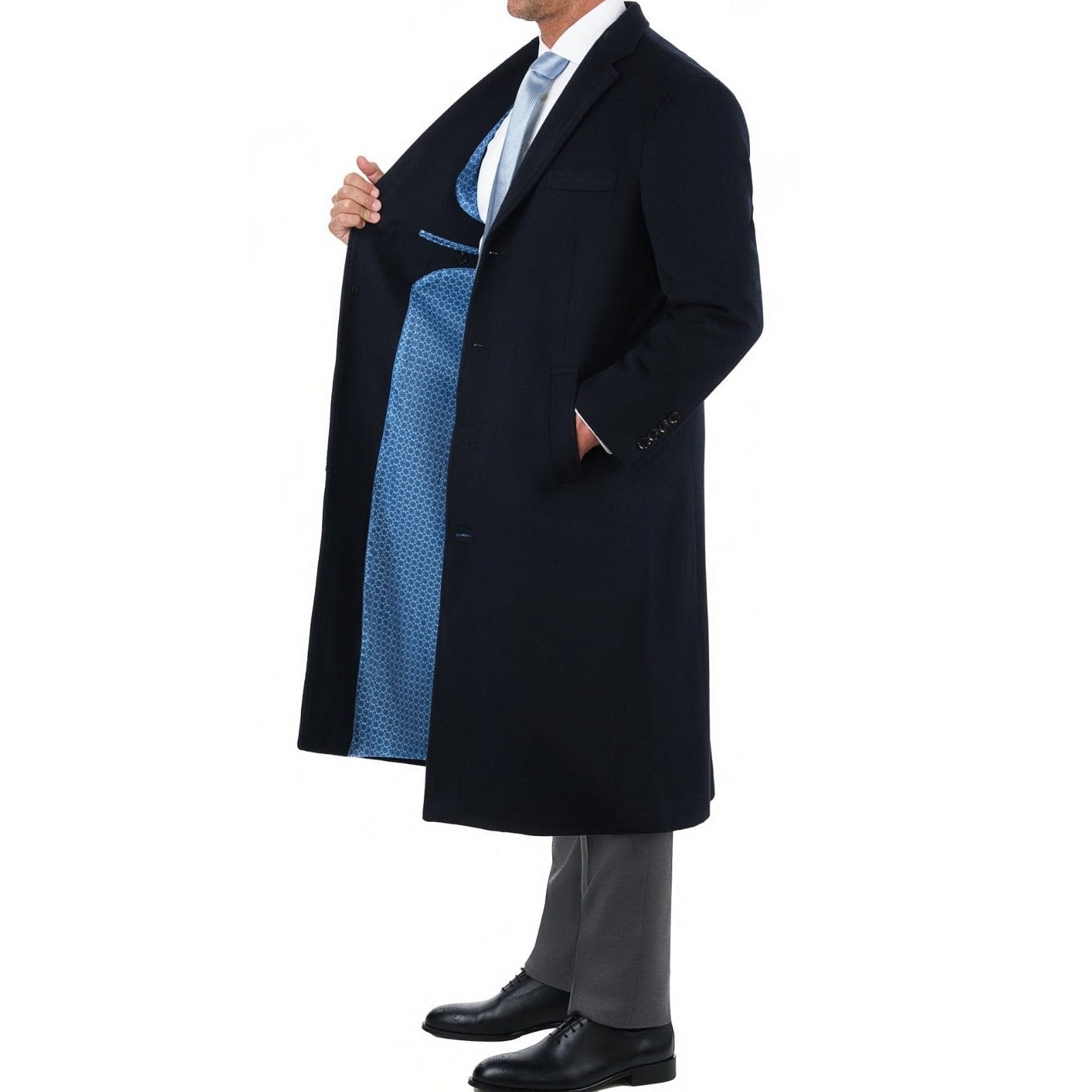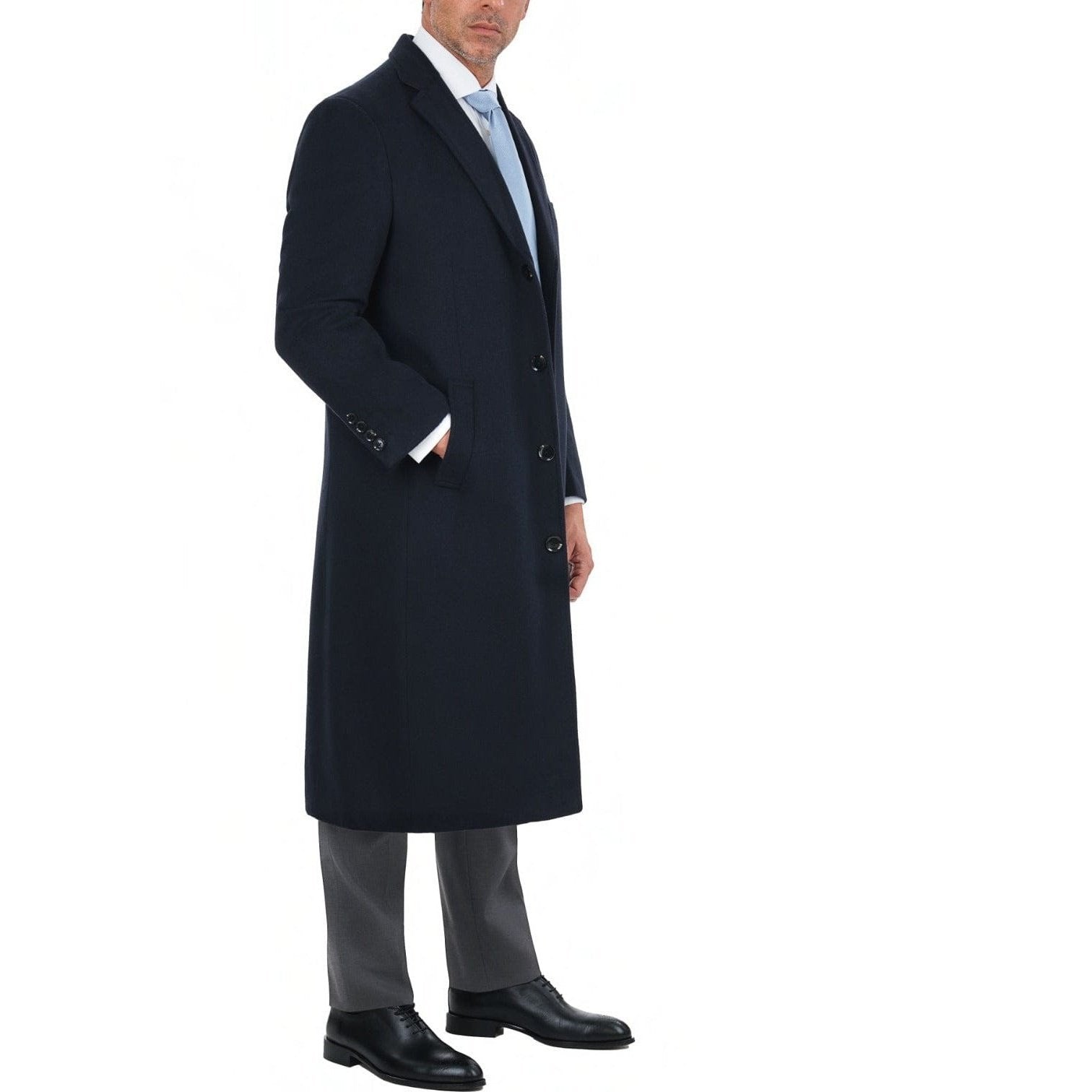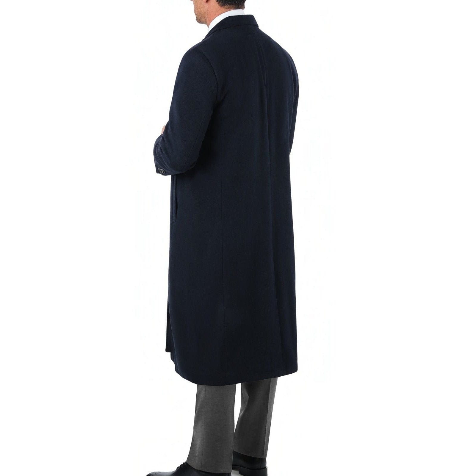 Men's Regular Fit Navy Blue Full Length Wool Cashmere Overcoat Topcoat
