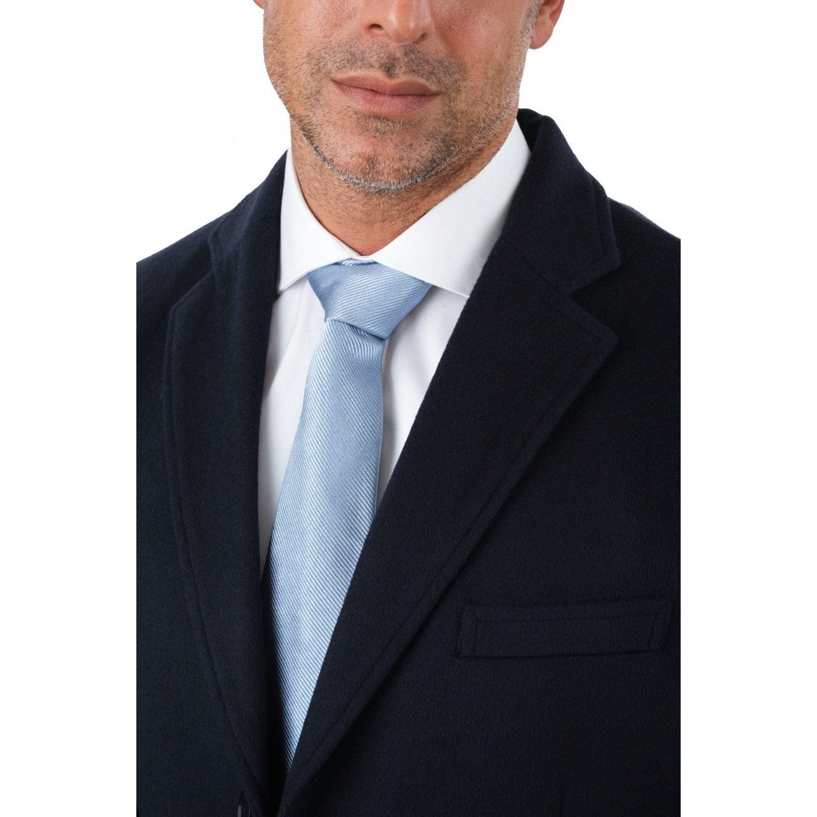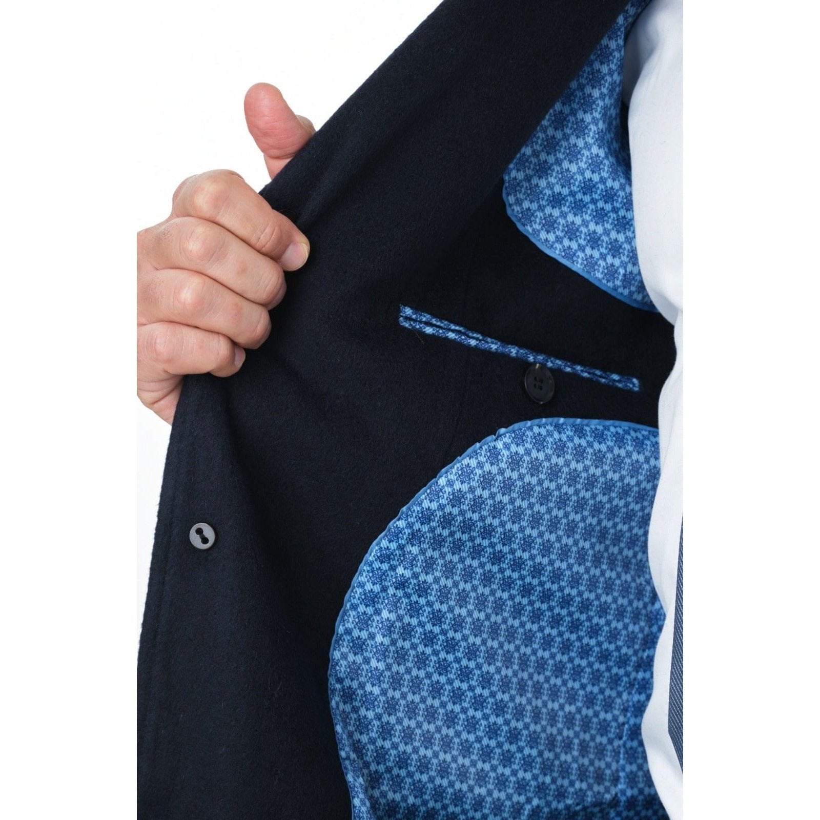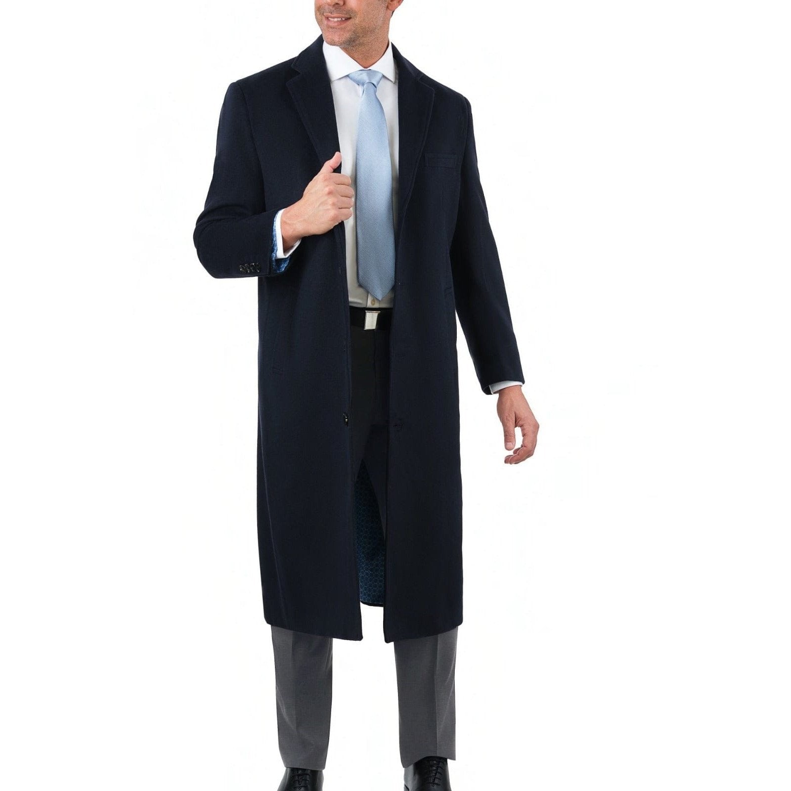 Men's Regular Fit Navy Blue Full Length Wool Cashmere Overcoat Topcoat