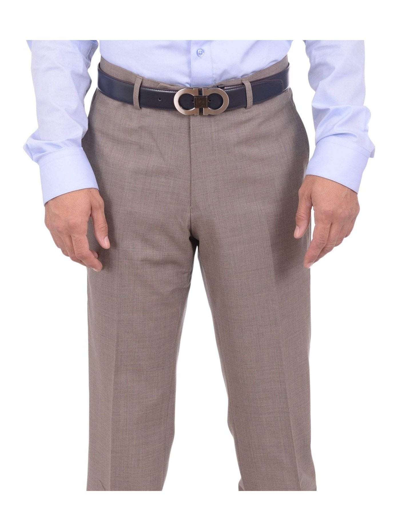 Mens Napoli Extra Slim Fit Heather Taupe Flat Front Wool Dress Pants