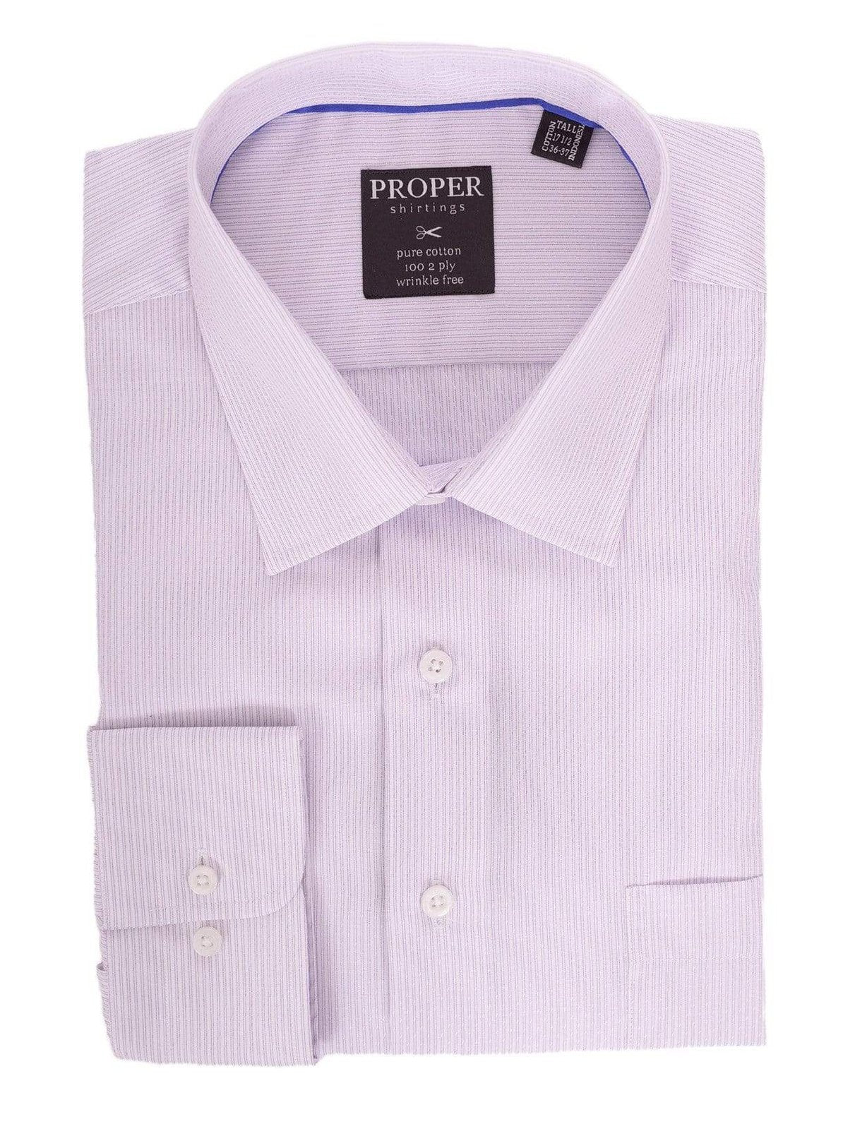 Mens Purple Pinstriped Spread Collar 100 2 Ply Wrinkle Free Cotton Dress Shirt