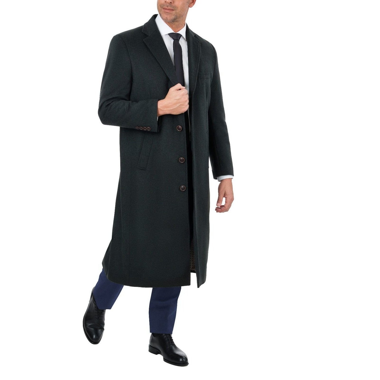 Mens Regular Fit Solid Hunter Green Full Length Wool Cashmere Overcoat Top Coat
