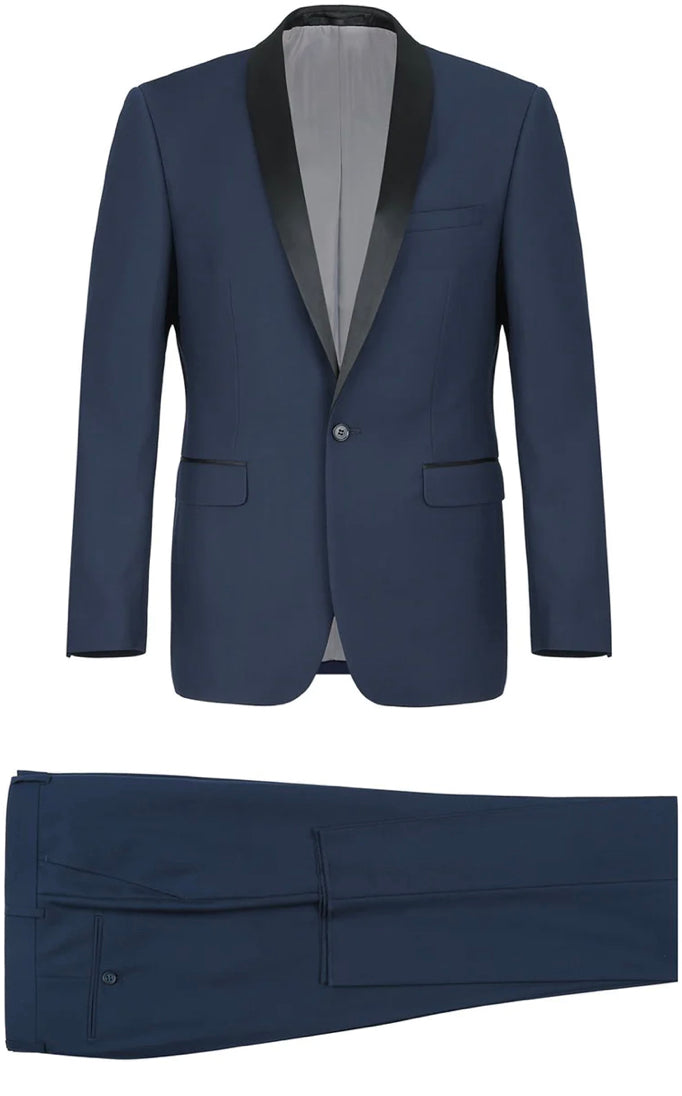 Men's Slim Fit 1 Button Shawl Lapel Tuxedo Jacket & Pants - Solid Blue