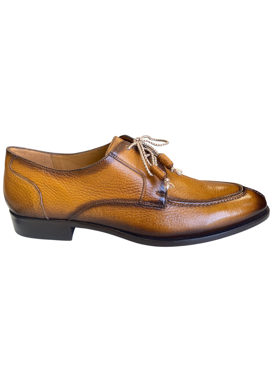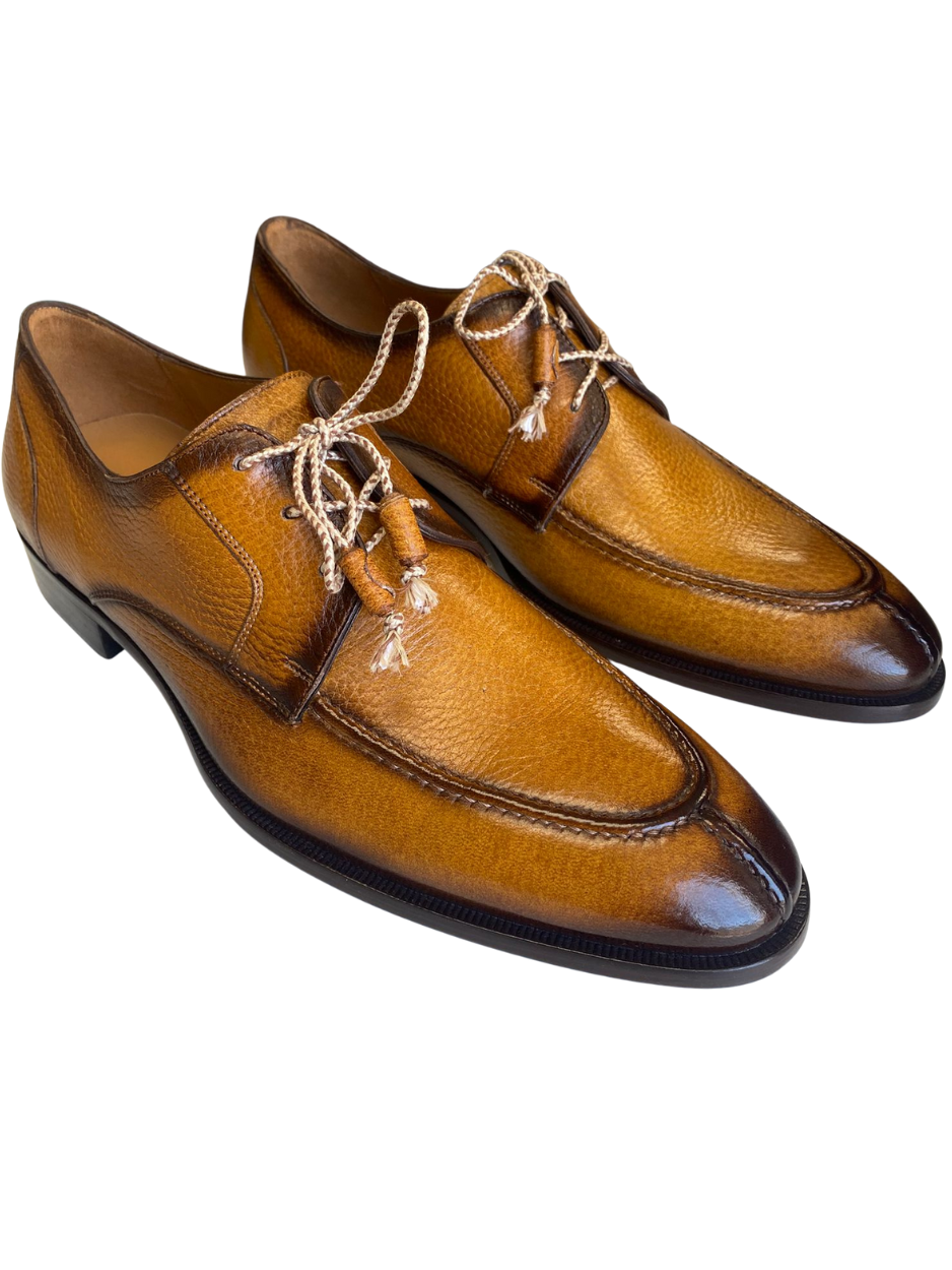 Mezlan Fratello Cognac Pebbled Leather Apron Toe Derby Dress Shoes