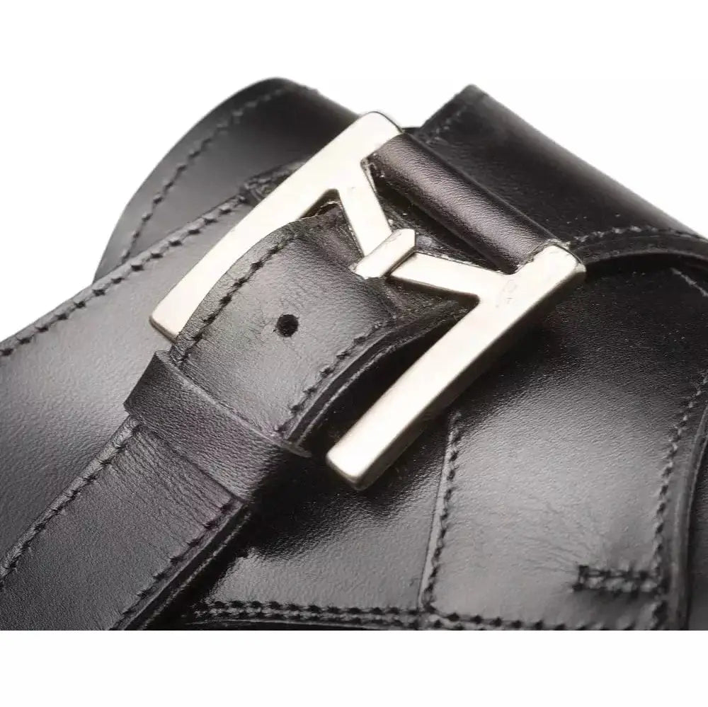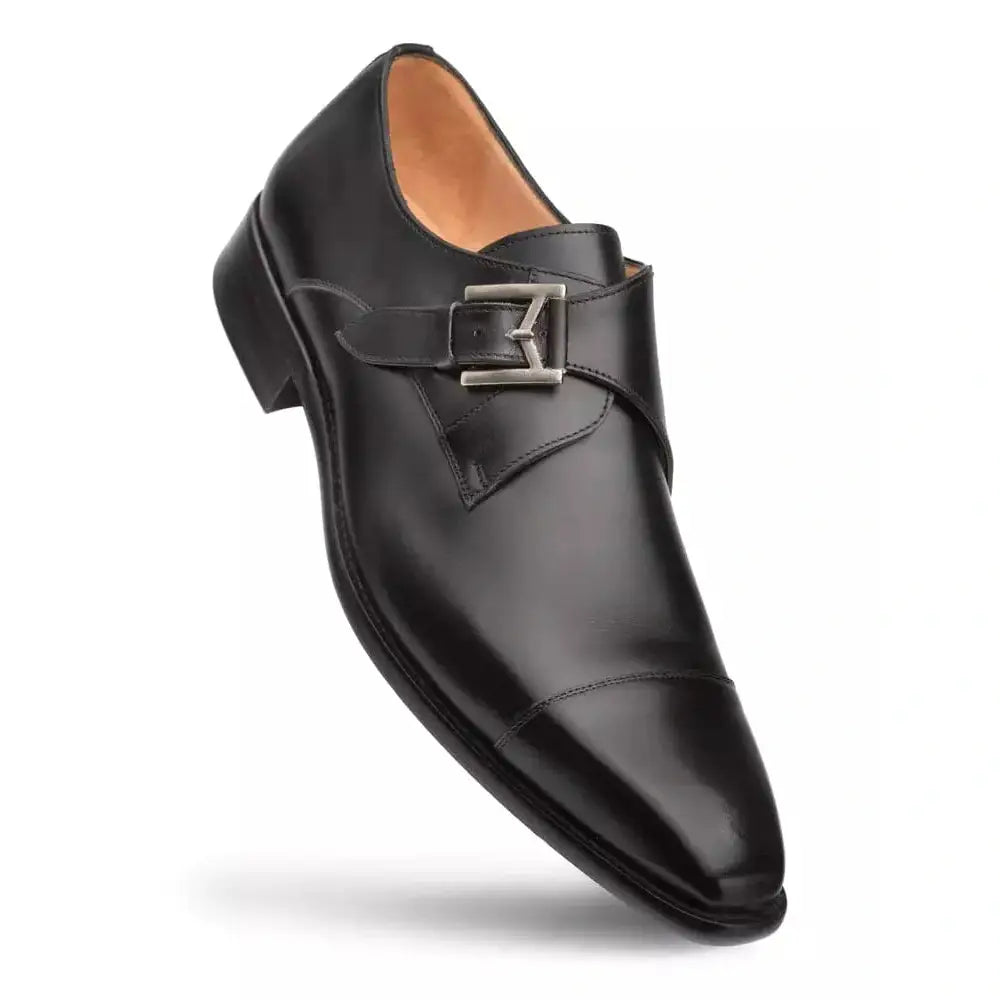 Mezlan Mens Black Single Monk Strap Cap Toe Leather Dress Shoes