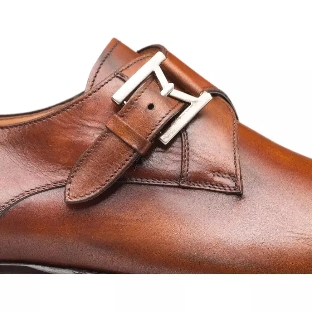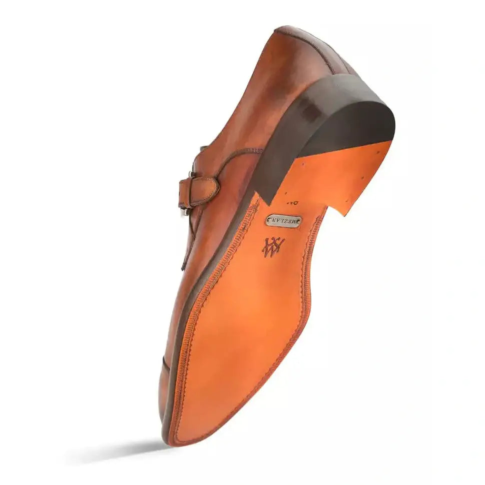 Mezlan Mens Cognac Single Monk Strap Cap Toe Leather Dress Shoes