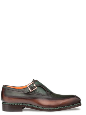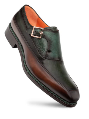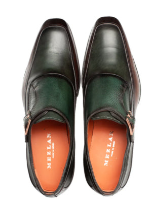 Mezlan Mens Green and Brown Monk Strap Leather Dress Shoes