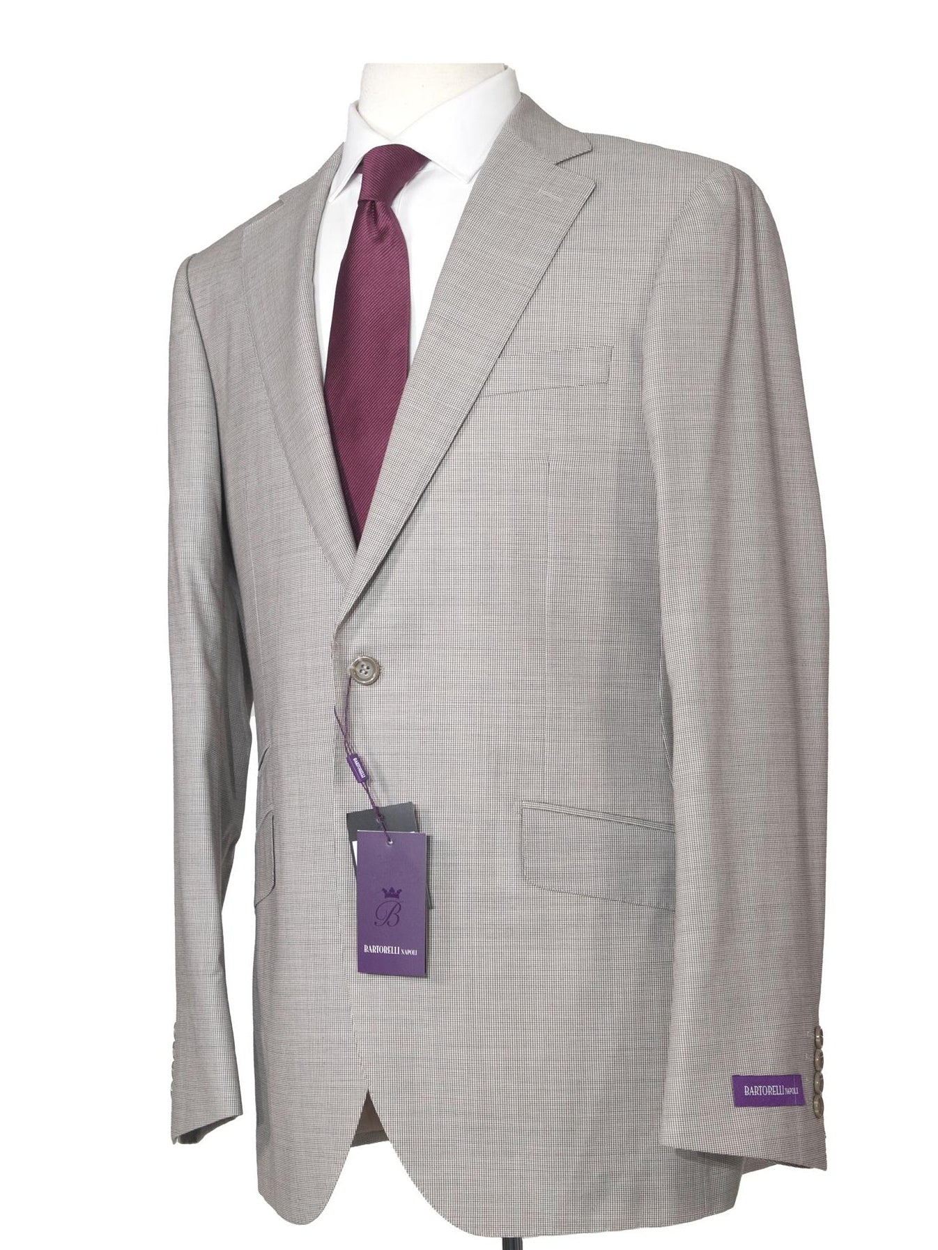 - Includes flat front trousers and a two button jacket