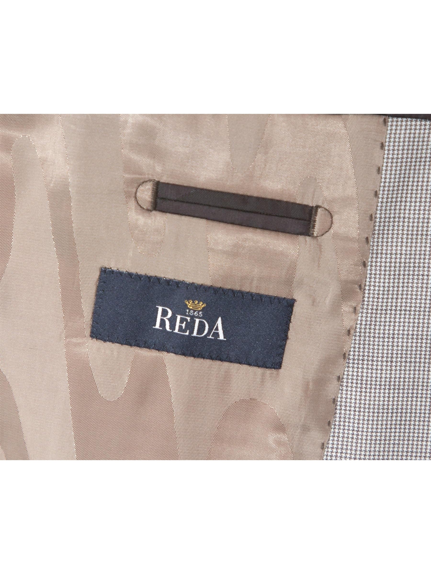 Napoli Mens Tan Houndstooth 100% Reda Wool Slim Fit 2 Piece Suit