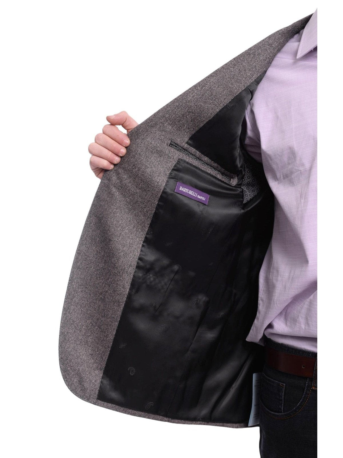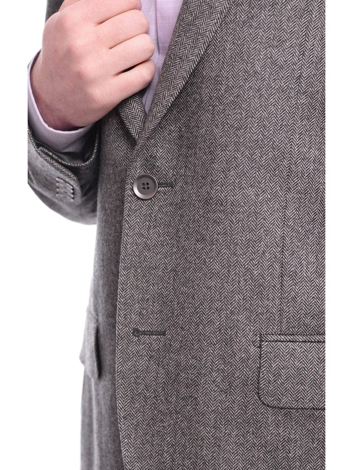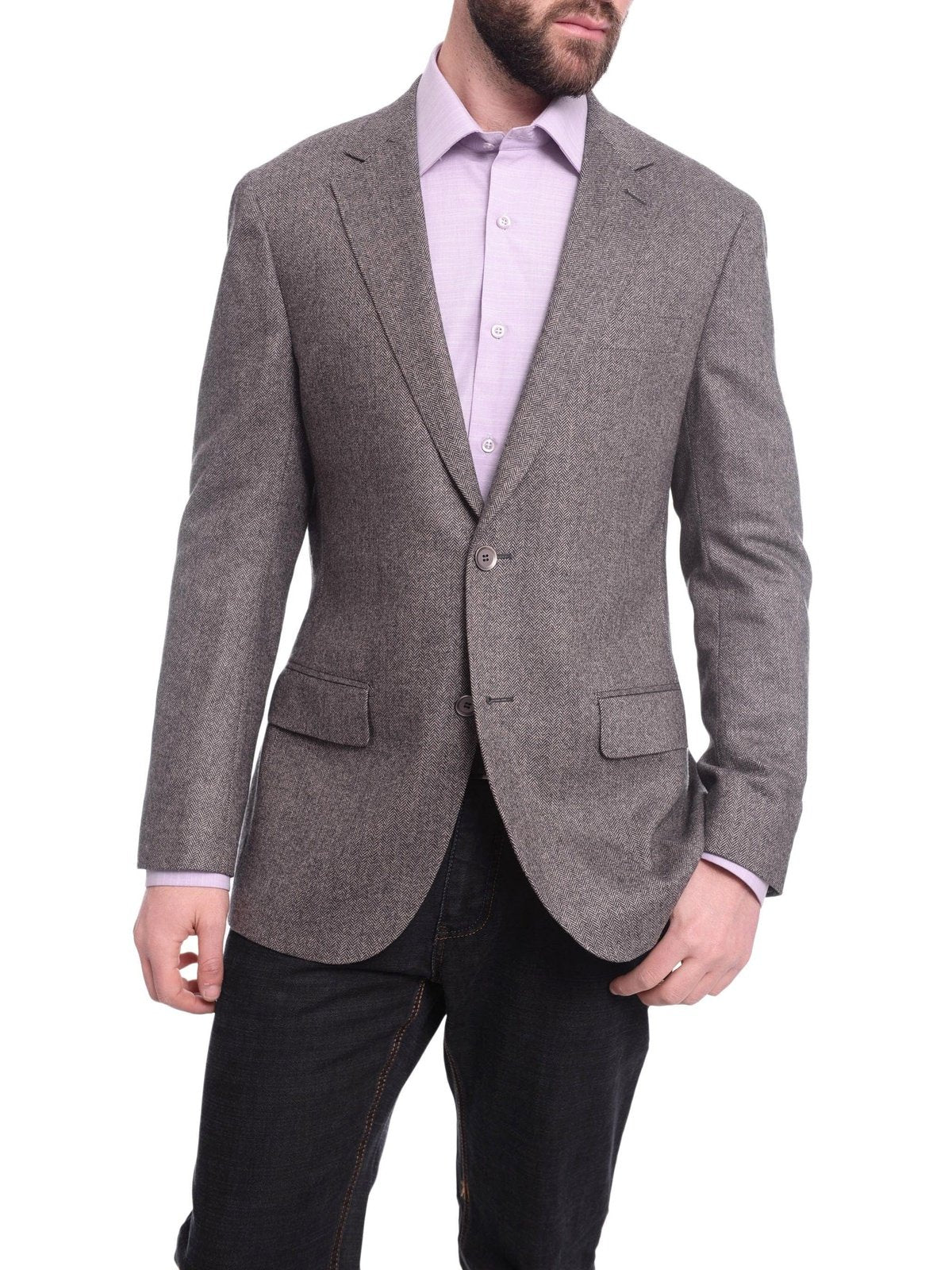 Napoli Slim Fit Gray Herringbone Half Canvassed Cashmere Blazer Sportcoat