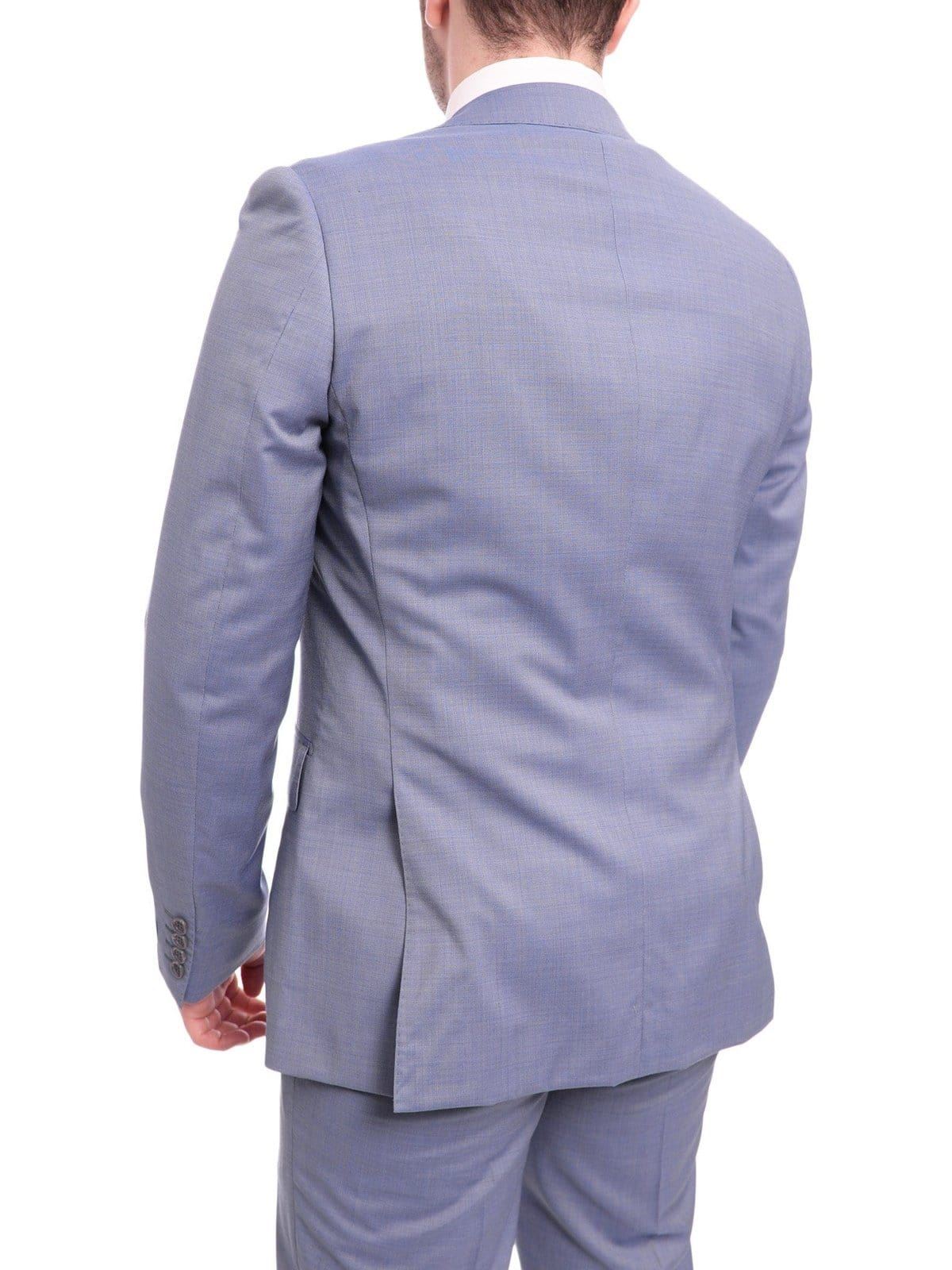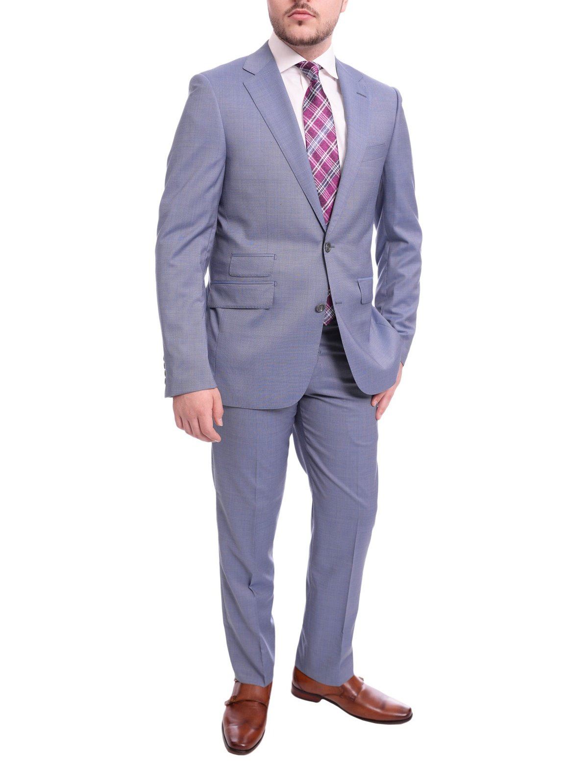 Napoli Slim Fit Light Blue Textured Half Canvassed Two Button Wool Suit