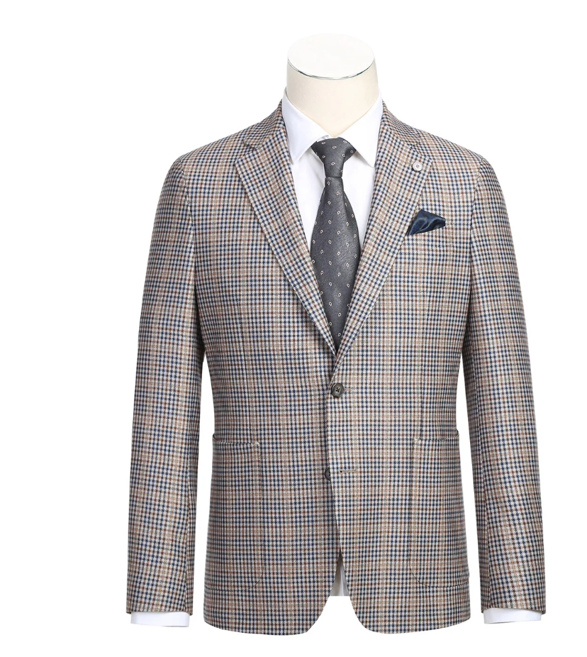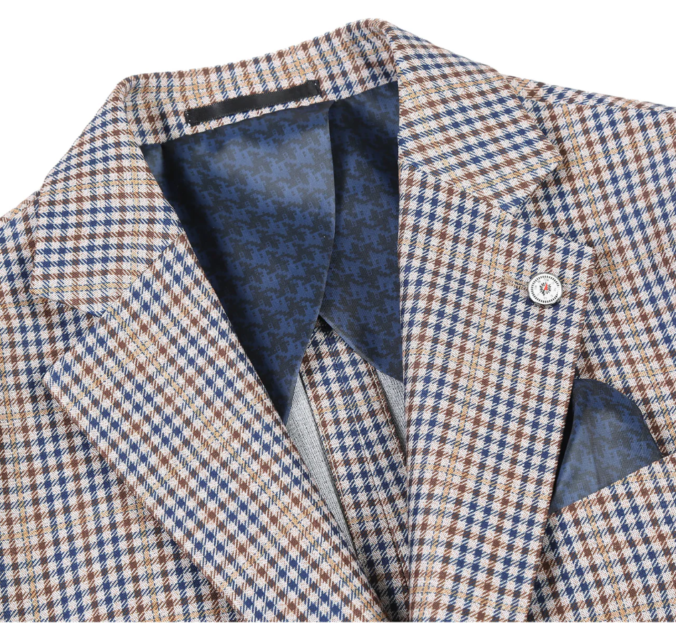 Raphael Brown And Blue Houndstooth Slim Fit Half Canvas Notch Lapel Two Button Blazer