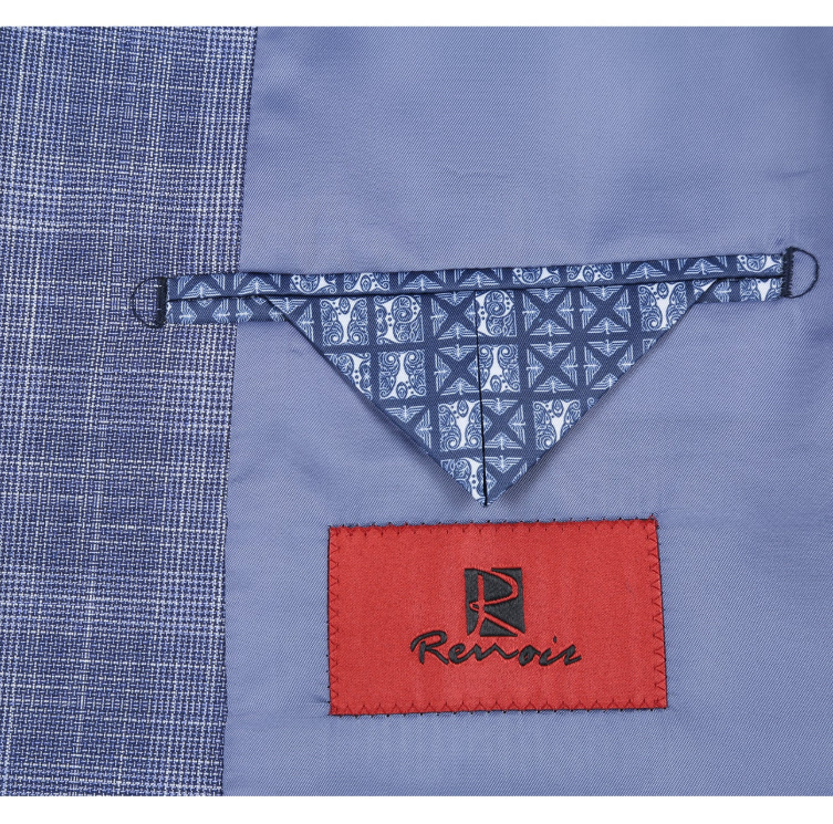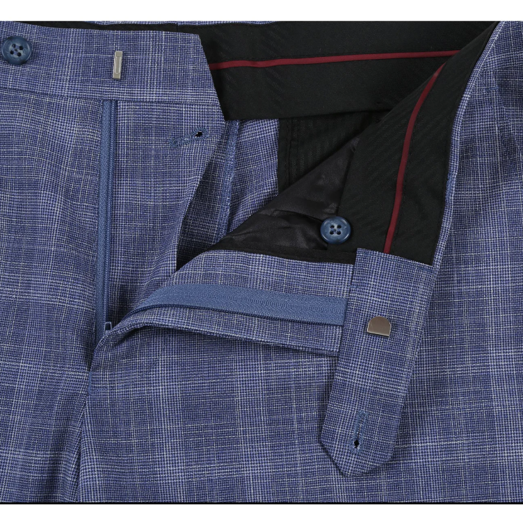 Raphael Blue Checked Slim Fit Stretch Notch Lapel Two Button Suit