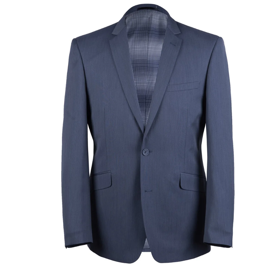 This classic two-piece suit delivers a polished, versatile look for any occasion. Made from a smooth, durable fabric, it features a modern two-button jacket with notch lapels and flap pockets, paired with flat-front trousers for a streamlined silhouette. The medium blue color offers a fresh alternative to navy, making it a smart choice for work, weddings, and formal events.