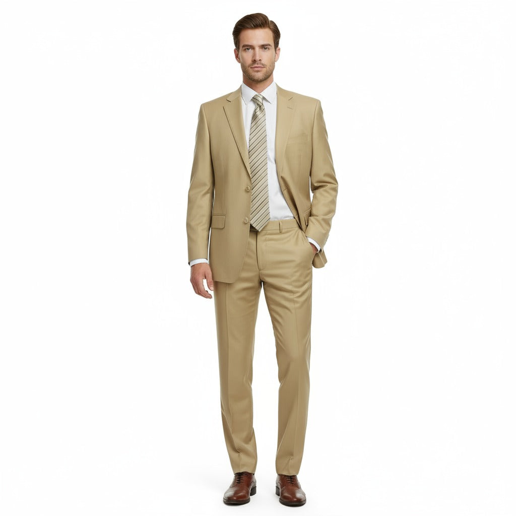 Raphael Men’s Classic Fit Tan Super 170’s Notch Lapel Wool Two Button Suit