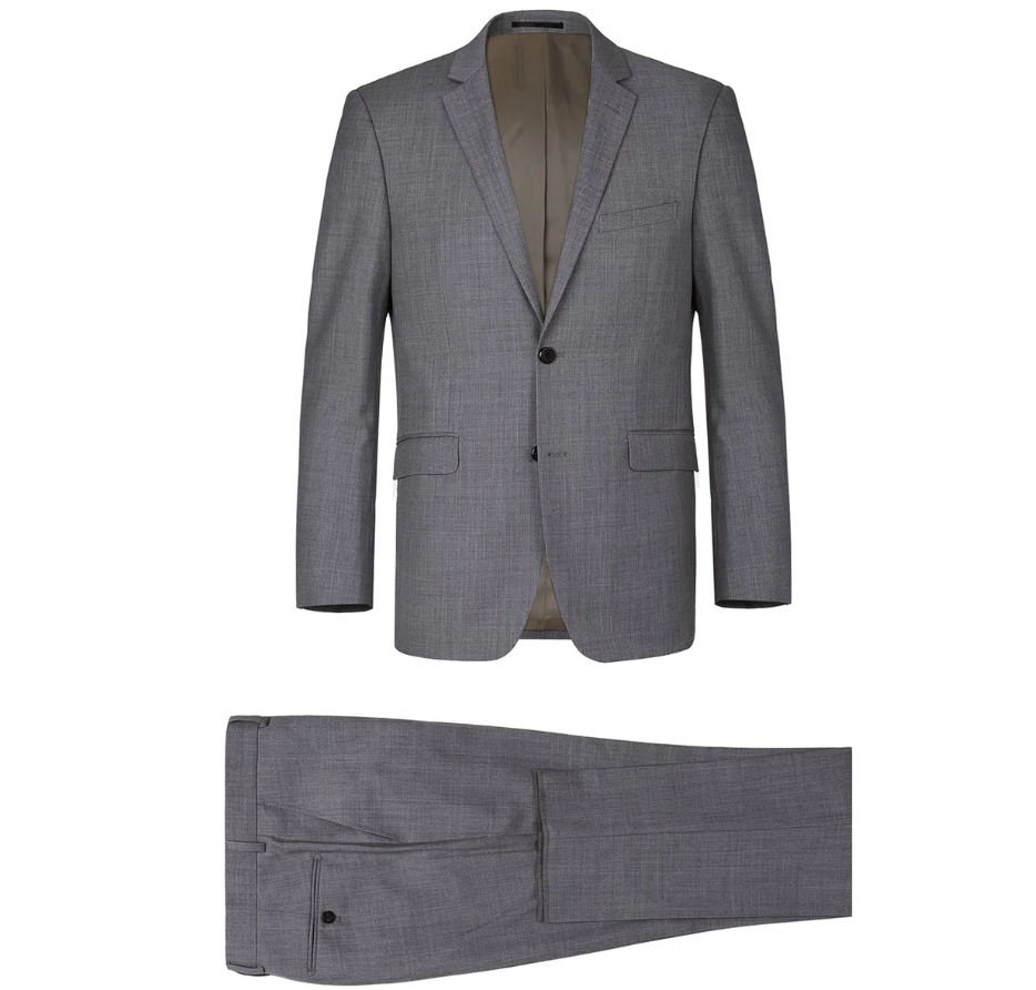 Raphael Men's Gray Slim Fit Notch Lapel Two Button Wool Suit