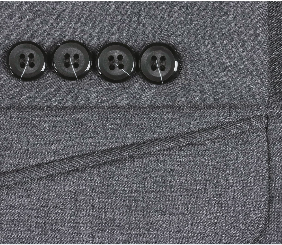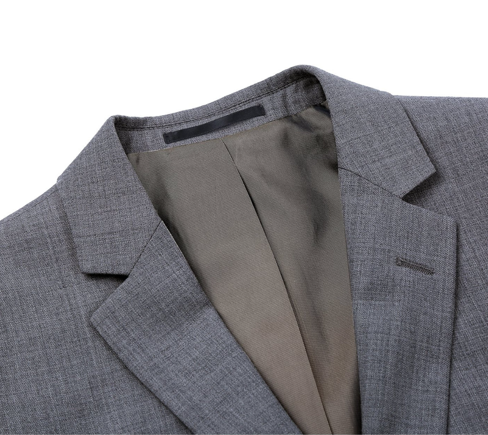 Project a sharp, modern image with this slim fit gray suit, tailored for a clean, contemporary silhouette. The two-button, single-breasted jacket features notch lapels, flap pockets, and side vents, offering both style and comfort. Slim-cut, flat-front trousers complete the look, enhancing the suit’s streamlined profile. The versatile light gray tone pairs effortlessly with a variety of shirt and tie combinations, making it perfect for business meetings, weddings, and social events where style and sophistication are key.