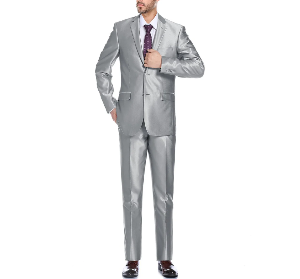 Raphael Mens Silver Sharkskin Classic Fit Notch Lapels Italian Style 2 Button Suit
