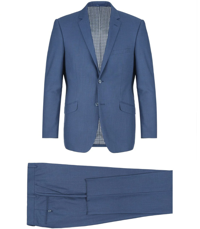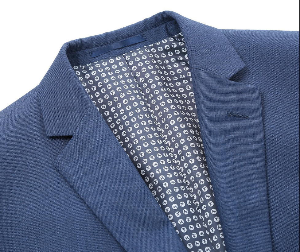Raphael Solid Textured Blue Notch Lapel Classic Fit Two Button Suit
