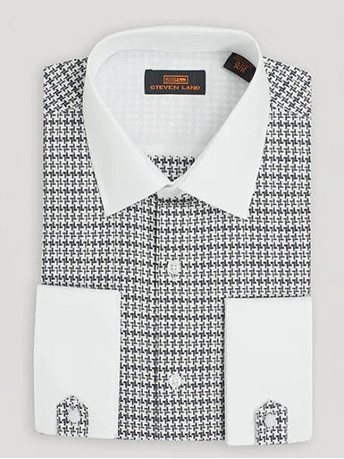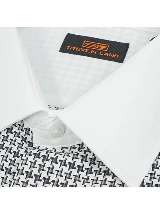 Steven Land Mens Black & White 100% Cotton Contrast Collar & French Cuff Dress Shirt