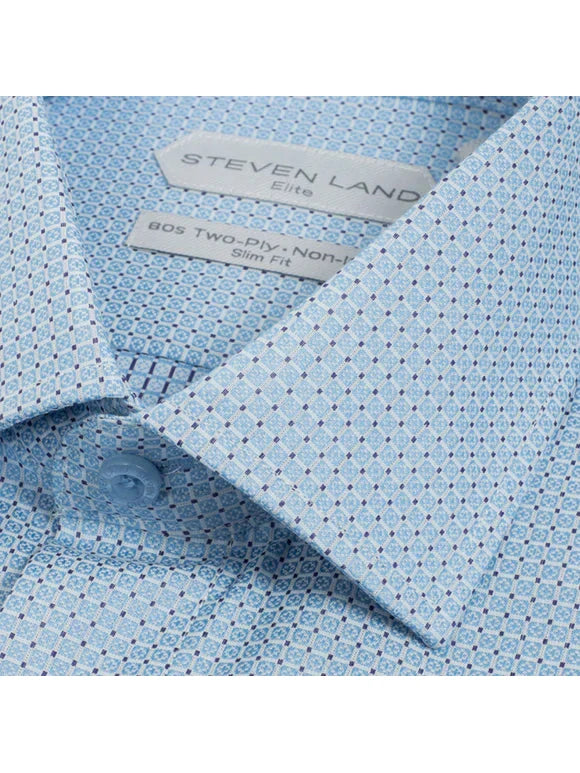 The Steven Land slim fit blue spread collar shirt is the perfect foundation for suits and blazers, and stands alone with trousers. Its 100% cotton is soft and breathable. Enjoy this stylish addition to your wardrobe for years to come.