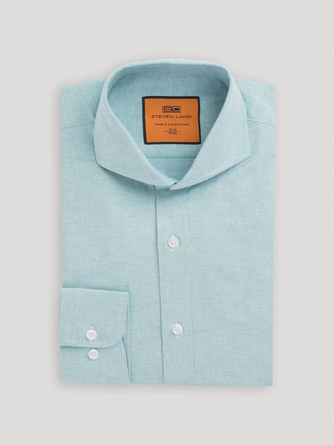 Steven Land Classic Fit Seafoam Green Cotton Blend Cutaway Collar Wrinkle Free Dress Shirt