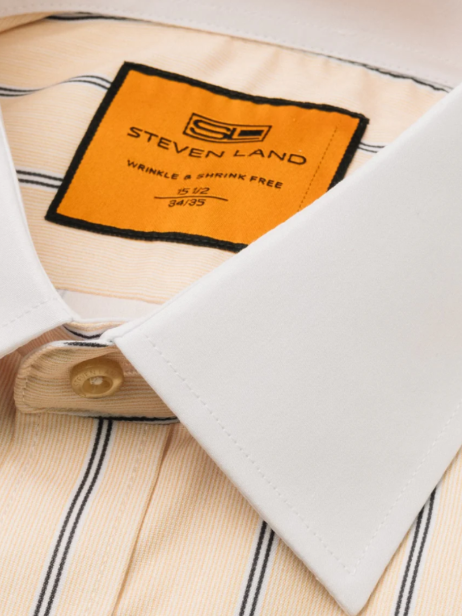 Steven Land Yellow Stripe Spread Collar French Cuff Wrinkle & Shrink Free Dress Shirt